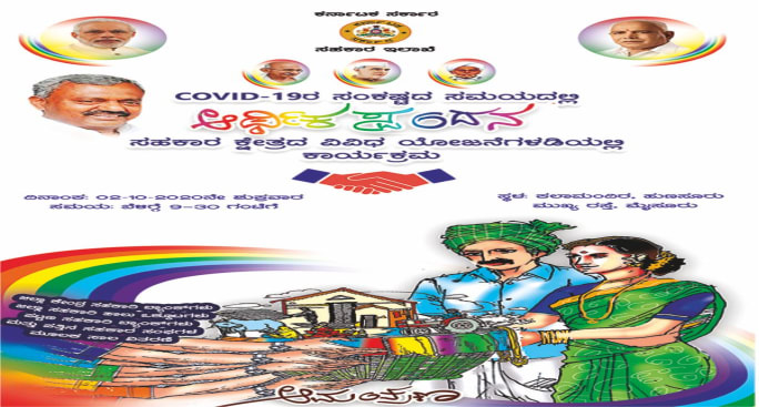COVID-19ರ ಸಂಕಷ್ಟದ ಸಮಯದಲ್ಲಿ "ಆರ್ಥಿಕ ಸ್ಪಂದನ " ಸಹಕಾರ ಕ್ಷೇತ್ರದ ವಿವಿಧ ಯೋಜನೆಗಳಡಿಯಲ್ಲಿ ನಡೆಯುವ ಕಾರ್ಯಕ್ರಮಕ್ಕೆ ಎಲ್ಲರಿಗೂ ಸ್ವಾಗತ. ದಿನಾಂಕ : 02-10-2020 ಸಮಯ : 10:00 ಗಂಟೆಗೆ ಸ್ಥಳ : ಕಲಾ ಮಂದಿರ , ಹುಣಸೂರು ರಸ್ತೆ, ಮೈಸೂರು